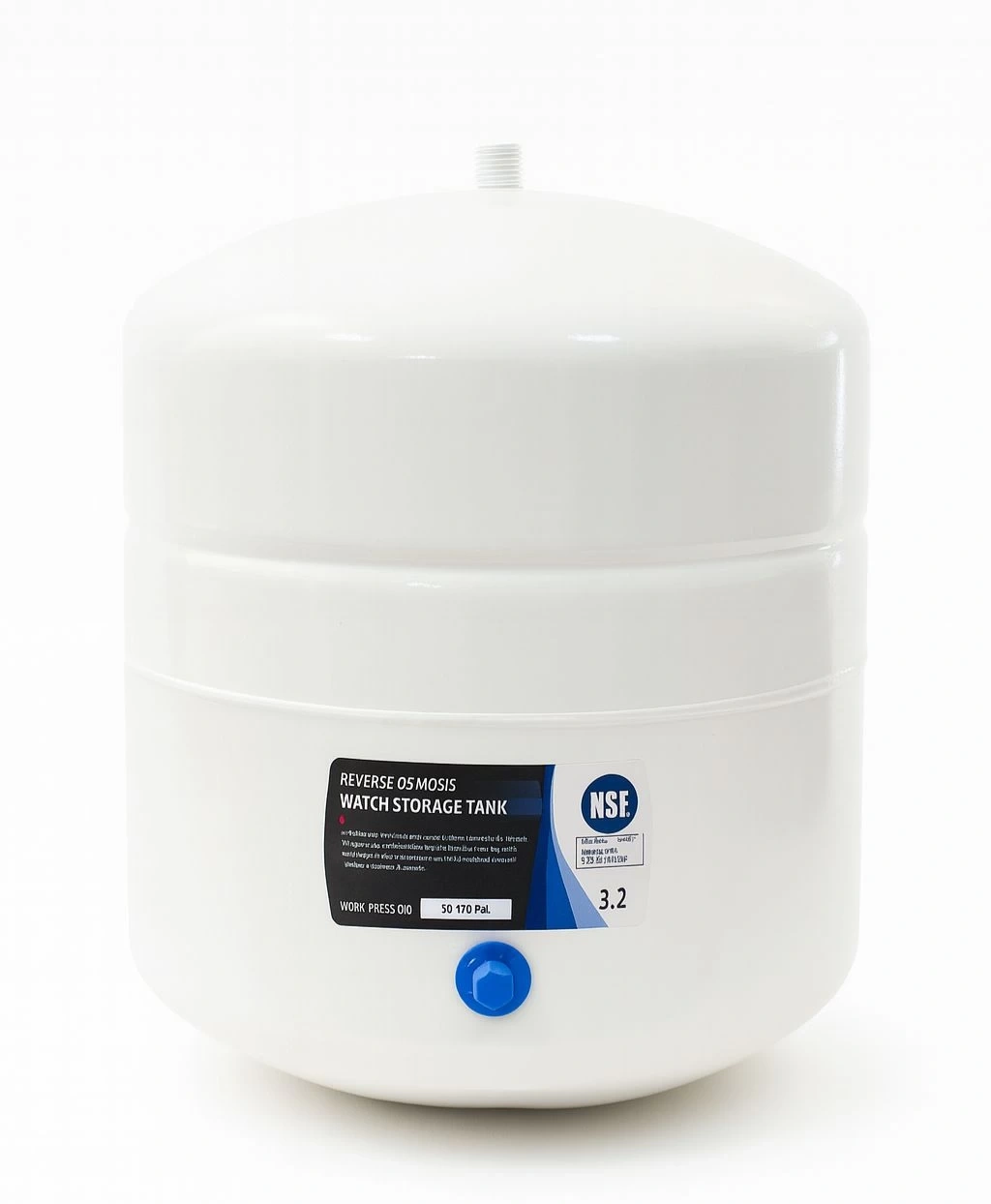 Reverse Osmosis (RO) su arıtma sistemleri için tasarlanmış 3.2 galon (yaklaşık 12 litre) kapasiteli basınçlı su deposudur. Metal gövdesi dayanıklı yapısı sayesinde uzun ömürlü kullanım sağlar. NSF (National Sanitation Foundation) onaylı olup, sağlıklı ve güvenli su depolama için uluslararası standartlara uygundur.