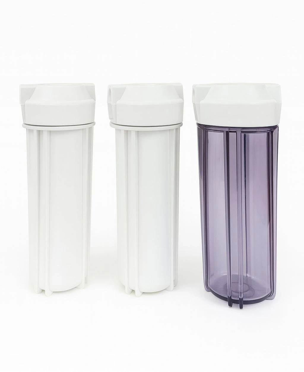 Bu 3’lü 10 inç filtre housing seti, ev tipi su arıtma sistemleri için özel olarak tasarlanmıştır. Dayanıklı malzemesi sayesinde uzun ömürlü kullanım sunar. Set içerisinde 2 adet beyaz gövde ve 1 adet şeffaf mor gövde bulunur. Şeffaf housing, filtre değişim zamanını kolayca görmenizi sağlar.